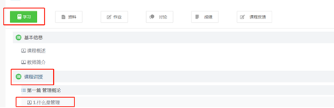 (2)進(jìn)入后選擇學(xué)習(xí)-課程講授,點(diǎn)擊視頻進(jìn)行學(xué)習(xí)