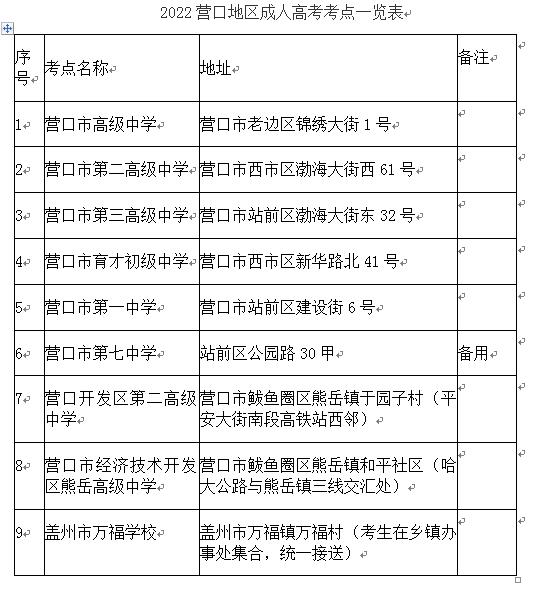 1.在原有營口市內(nèi)考區(qū)和鲅魚圈考區(qū)的基礎(chǔ)上,增設(shè)蓋州市考區(qū),設(shè)蓋州市萬福學(xué)??键c。