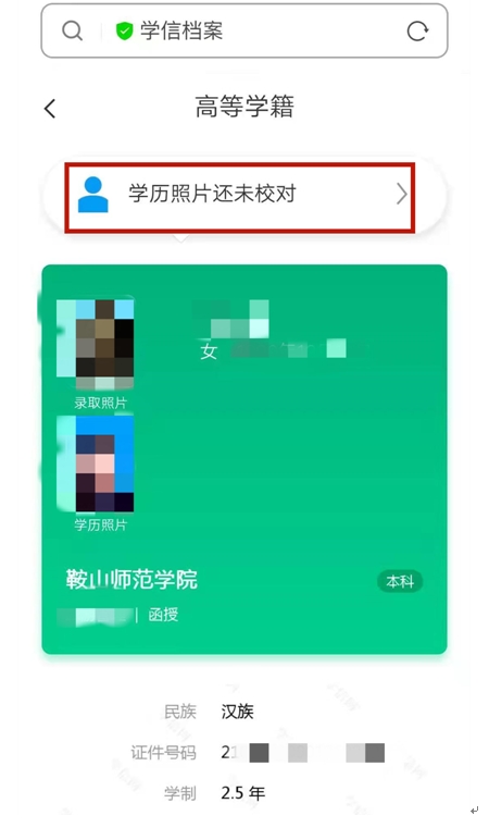 確認(rèn)無誤后,點擊 學(xué)歷照片還未校對。